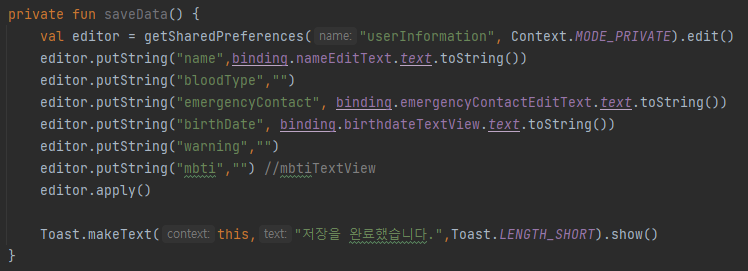 Room ? 네트워크에 액세스할 수 없을 때도 사용자가 오프라인 상태로 계속 콘텐츠를 탐색할 수 있도록 관련 데이터를 개시하는 것이다. 즉 자체 데이터베이스이다. 장점 SQL 쿼리의 컴파일 시간 확인 반복적이고 오류가 발생하기 쉬운 상용구 코드를 최소화하는 편의 주석 간소화된 데이터베이스 이전 경로 기본 구성요소 Database Class : 데이터베이스를 보유하고 앱의 영구 데이터와 기본 연결을 위한 기본 액세스 포인트 역할 Data entities : 앱 데이터베이스의 테이블 Data Access Objects(DAO) : 앱의 데이터베이스의 데이터를 쿼리, 업데이트, 삽입, 삭제하는 데 사용할 수 있는 메서드 DAO @Dao interface UserDao { @Query("SELECT * FROM..