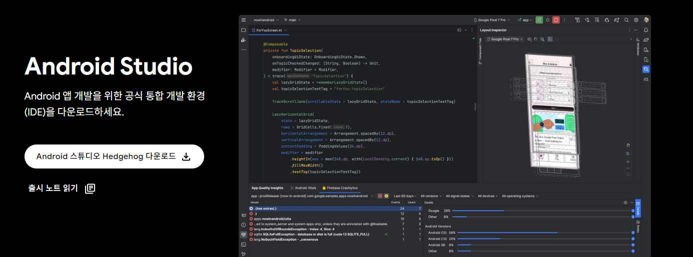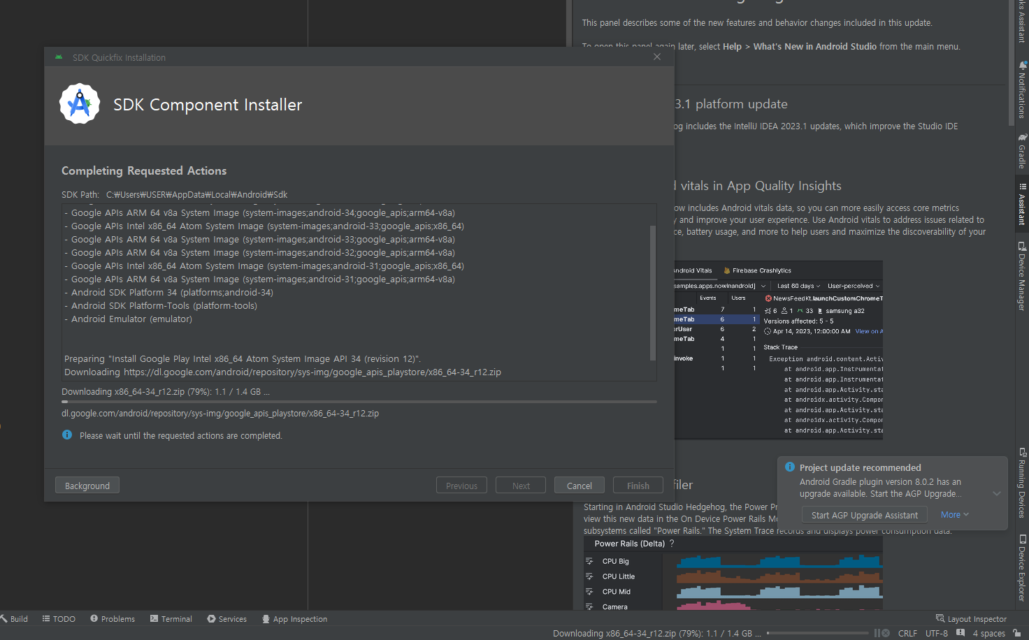 - Android Studio 예전버전이 정보가 많아서 그 동안 업데이트 해주지 않았지만 나중에라도 팀플을 하게되면 버전이 맞지 않을 것 같아서 강의를 들으면서 업데이트 해주었다.